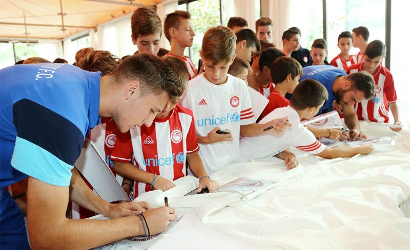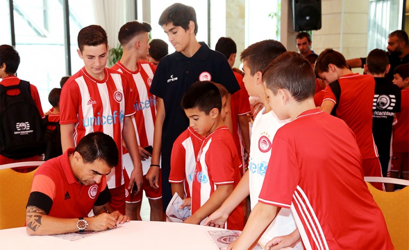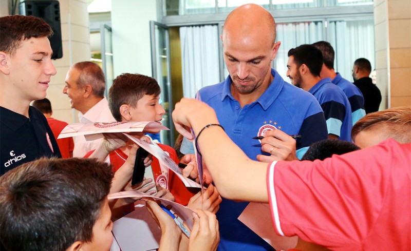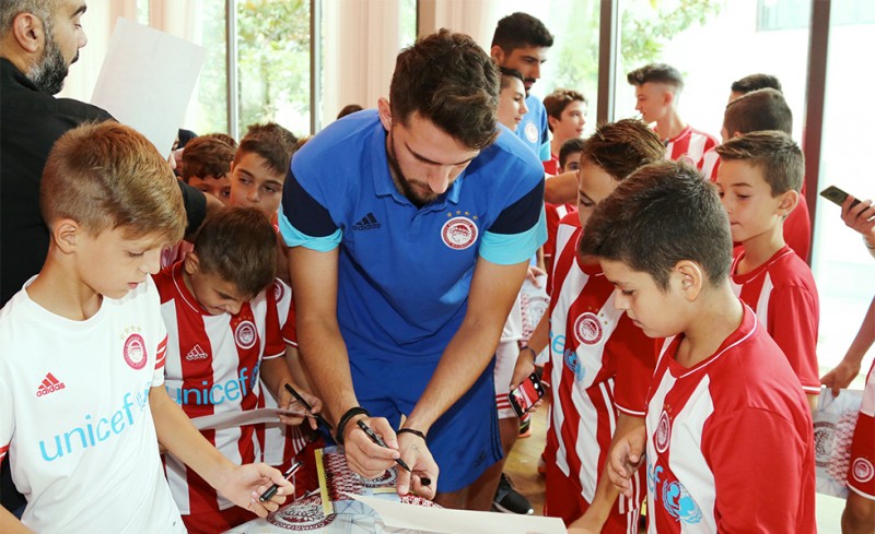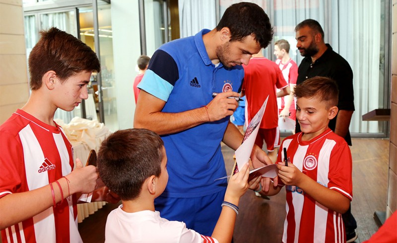 Στο ξενοδοχείο που μένει η αποστολή του Ολυμπιακού βρέθηκε σήμερα το πρωί η Σχολή Ποδοσφαίρου του συλλόγου στη Θεσσαλονίκη.