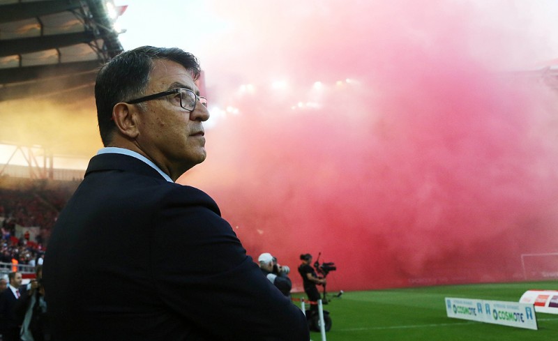 "Για παράδειγμα ο συνδυασμός που γίνεται και ο Μάριν σουτάρει στο δοκάρι, δεν ξέρω... Ναι, αδικείται ο Ολυμπιακός κατά κάποιο τρόπο. Ειδικά στο πρώτο ημίχρονο και το τόνισα στους παίκτες, είναι σημαντικό που το Καραϊσκάκη ήταν όρθιο. Ο κόσμος ευχαριστιόταν με αυτό που έβλεπε. Αν είχαμε κατορθώσει να προηγηθούμε, σίγουρα το σκορ θα ήταν διαφορετικό. Αυτό που θα πρέπει να κάνουμε είναι να διαχειριστούμε αυτή την κατάσταση. Είναι κάποια πράγματα που μου προξένησε και απορία. Μιλώντας στη συνέντευξη αμέσως μετά το ματς και μπαίνοντας στα αποδυτήρια, είδα μία τρελή κατάσταση με τα ΜΑΤ και παίκτες του Ολυμπιακού να δέρνονται. Δεν έχω καταλάβει τι ακριβώς έχει γίνει. Αυτό που πρέπει να κάνουμε και το πιστεύω πολύ, είναι ότι έχουμε ένα ματς στο ΟΑΚΑ".