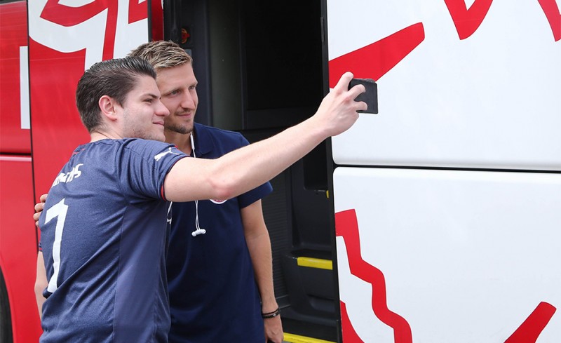 Οι φίλαθλοι της ομάδας δεν έχασαν την ευκαιρία και έβγαλαν φωτογραφίες με ποδοσφαιριστές του πρωταθλητή Ελλάδας. Στο... επίκεντρο ήταν, κυρίως, ο Μάρκο Μάριν.
