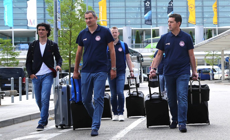 Η αποστολή του πρωταθλητή Ελλάδας έφτασε στο Μόναχο και από εκεί, οδικώς, με το πούλμαν, κατευθύνθηκε προς το Ζέεφελντ της Αυστρίας.
