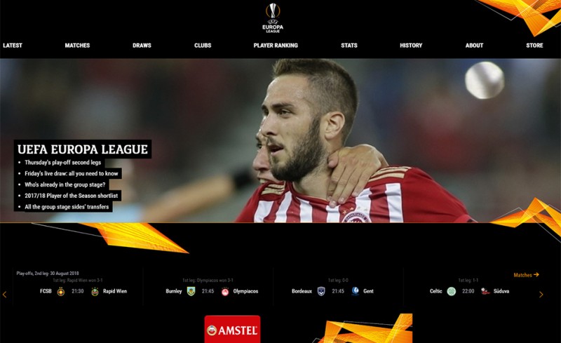 Μάλιστα, η UEFA, στη διοργάνωση του Europa League, ενόψει των αποψινών αγώνων, έχει πρώτο θέμα τον Ολυμπιακό. Για την ακρίβεια, έχει φόντο τον Κώστα Φορτούνη να πανηγυρίζει με την ερυθρόλευκη φανέλα.