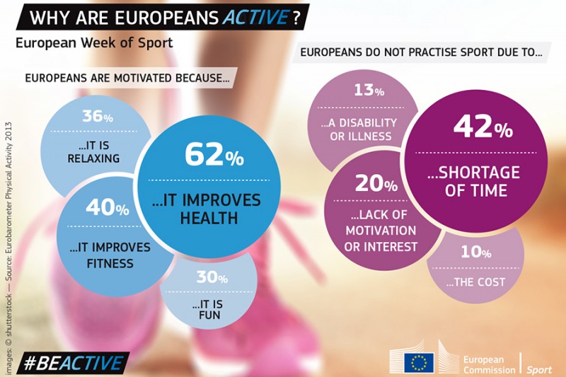 Τα κίνητρα είναι πολύ σημαντικά. Οι ευρωπαίοι άλλωστε απαντώντας στο ερώτημα «Γιατί αθλείστε;» απάντησαν κατά σειρά προτίμησης, 62% επειδή κάνει καλό στην υγεία τους, 40% για την καλύτερη φυσική κατάστασή τους και την εικόνα τους, κατά 36% επειδή το βρίσκουν χαλαρωτικό σαν δραστηριότητα, ενώ 30% των απαντήσεων συγκέντρωσε η επιλογή ότι ασκούνται επειδή απλά τους ικανοποιεί.