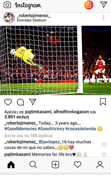 Το ματς αυτό θυμήθηκε ο Ρομπέρτο στα social media, ενώ του σχολίασε και ο τότε συμπαίκτης του στον Ολυμπιακό Παϊτίμ Κασάμι!