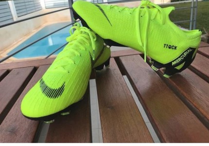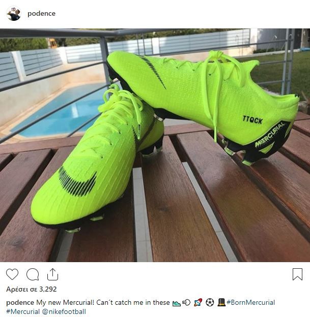 Ο Πορτογάλος εξτρέμ, λοιπόν, ο οποίος βρίσκεται σε πολύ καλή αγωνιστική κατάσταση, έκανε τα… αποκαλυπτήρια των νέων του παπουτσιών, με τα οποία θα αγωνίζεται με την επανέναρξη των αγωνιστικών υποχρεώσεων του Θρύλου.