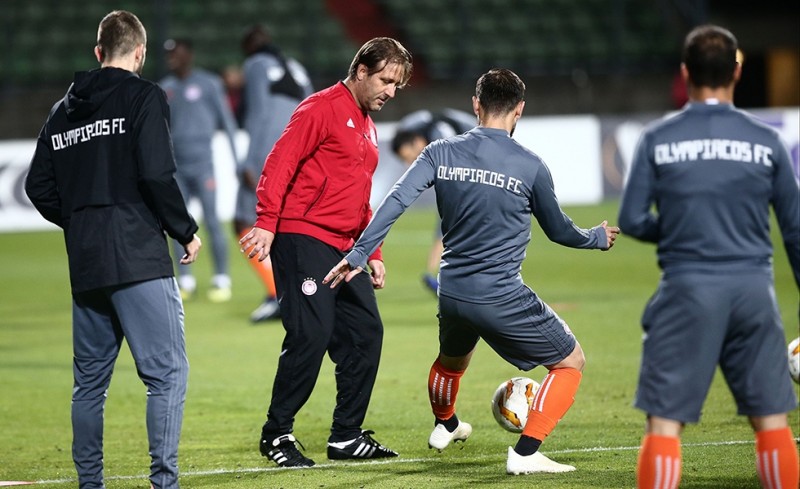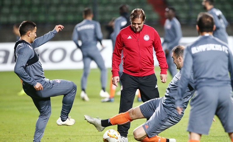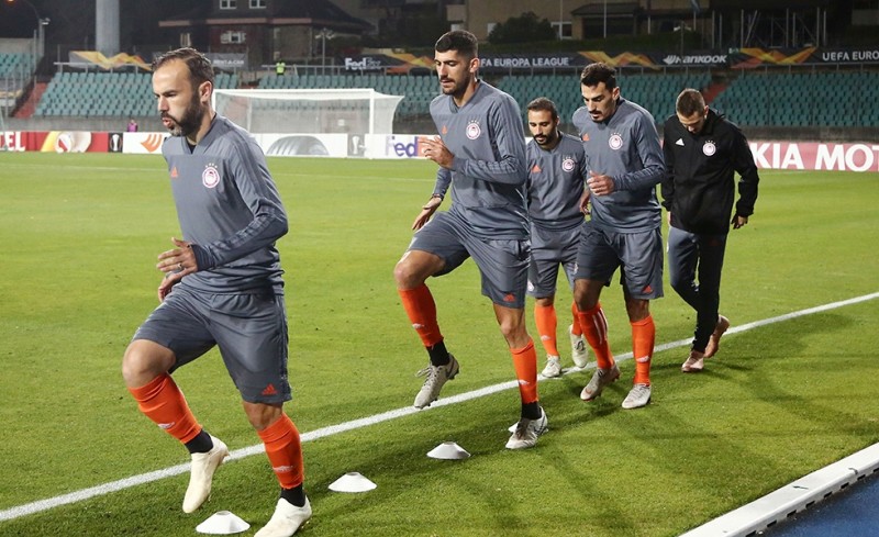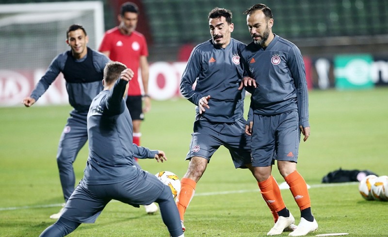Την τελευταία τους προπόνηση πραγματοποίησαν οι ποδοσφαιριστές του Ολυμπιακού το βράδυ της Τετάρτης, στο γήπεδο της Ντουντελάνζ «Ζοζί Μπαρτέλ» μία ημέρα πριν τον μεταξύ τους αγώνα στο συγκεκριμένο γήπεδο, για τους ομίλους του Europa League.