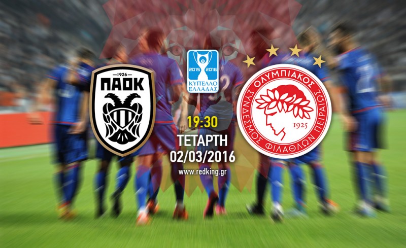 Πρώτος ημιτελικός στο Κύπελλο Ελλάδας ανάμεσα στον Ολυμπιακό και τον ΠΑΟΚ, απόψε στην Τούμπα. Live από το redking.gr.