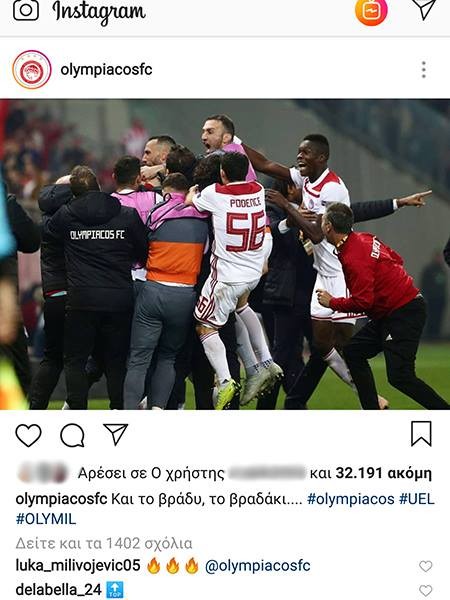 Μεταξύ αυτών, ήταν οι Παϊτίμ Κασάμι, Λούκα Μιλιβόγεβιτς και Αλμπέρτο Ντε Λαμ Μπέγια. Ο πρώτος σχολίασε σε ανάρτηση του Κώστα Φορτούνη στο Instagram, ενώ ο Σέρβος μέσος και ο Ισπανός μπακ άφησαν το σχόλιό τους σε ανάρτηση της «ερυθρόλευκης» ΠΑΕ μετά το θρίαμβο. Στην ίδια κατηγορία συμπεριλαμβάνεται και ο Αλεξί Ρομαό, ο οποίος με story στο Instagram, έκανε γνωστό ότι παρακολούθησε το ματς του Ολυμπιακού.