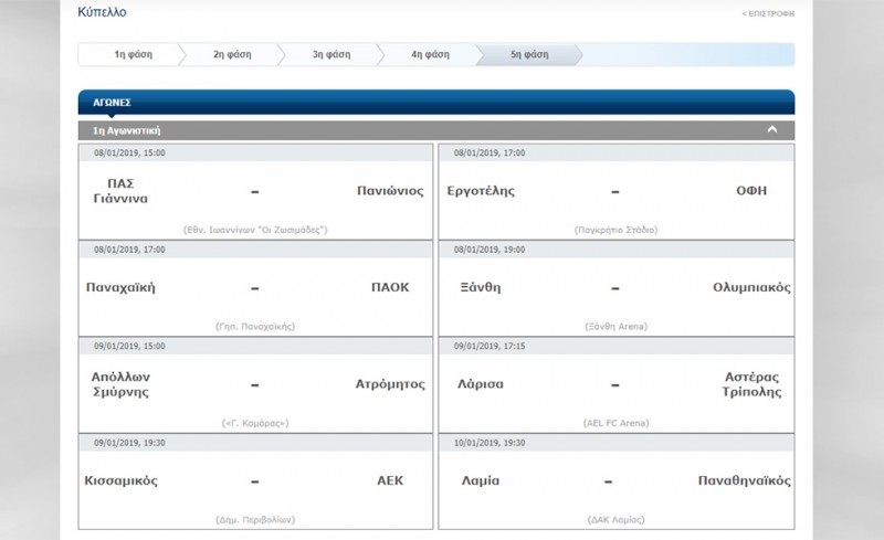 Αναλυτικά το πρόγραμμα των πρώτων αγώνων των «16» του Κυπέλλου Ελλάδας: