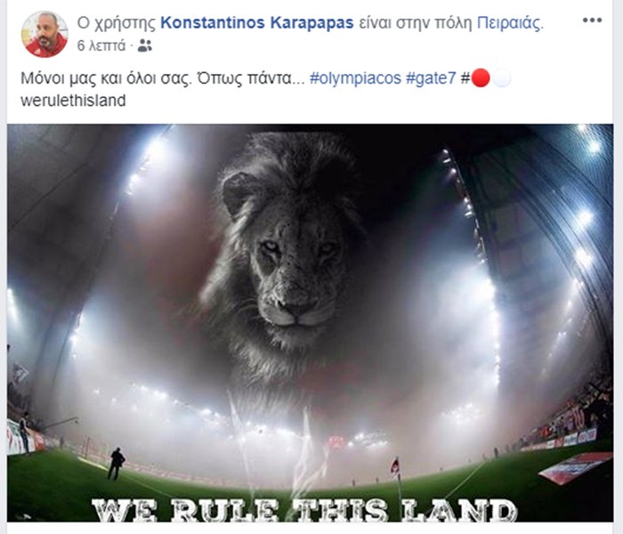 «Μόνοι μας και όλοι σας. Όπως πάντα...», έγραψε ο Διευθυντής Επικοινωνίας της ΠΑΕ Ολυμπιακός.