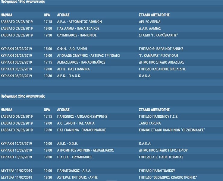 Λίγες ώρες μετά την απόφαση του Διαιτητικού Δικαστηρίου της ΕΠΟ, η Super League ανακοίνωσε το πρόγραμμα των αγώνων του πρωταθλήματος.