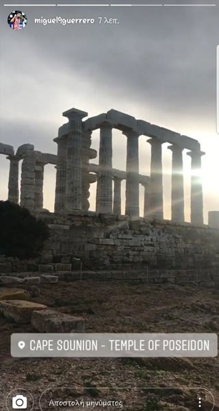 Στο πλαίσιο αυτό, ο Μιγκέλ Άνχελ Γκερέρο εκμεταλλεύτηκε τις πολύ καλές καιρικές συνθήκες και βρέθηκε στο Σούνιο, αναρτώντας τις σχετικές φωτογραφίες στα Social Media.
