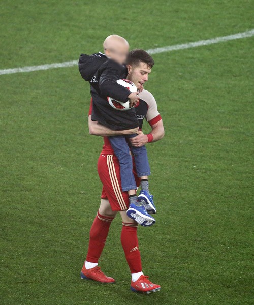 Παίρνει τον μικρό Βασίλη, ο οποίος αντιμετωπίζει πρόβλημα υγείας, και παίζει μαζί του με μία μπάλα, μπροστά από τη Θύρα 7 και όλος ο κόσμος χειροκροτεί.