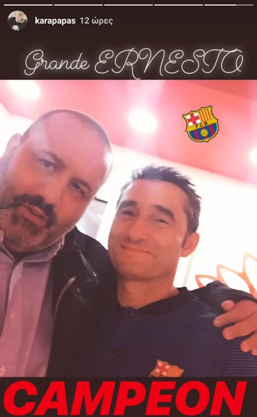 Τα συγχαρητήριά του στον Ερνέστο Βαλβέρδε για την κατάκτηση του πρωταθλήματος με τη Μπαρτσελόνα, έδωσε ο Κώστας Καραπαπάς, ανεβάζοντας μία φωτογραφία των δύο τους από το παιχνίδι του Ολυμπιακού με τους «μπλαουγκράνα» στο «Γεώργιος Καραϊσκάκης» για το Champions League.