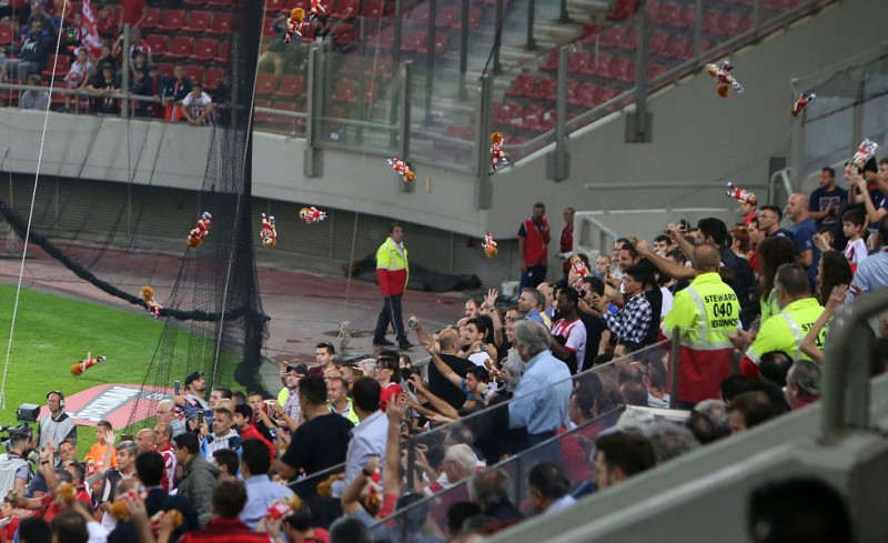 Πολύ όμορφες εικόνες έλαβαν χώρα στο Καραϊσκάκη, λίγο πριν τη σέντρα του ματς ανάμεσα στον Ολυμπιακό και στον ΟΦΗ, για την 7η αγωνιστική του πρωταθλήματος.