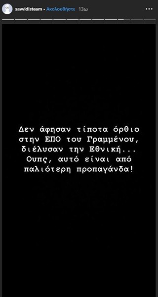 «Δεν άφησαν τίποτα όρθιο στην ΕΠΟ του Γραμμένου, διέλυσαν την Εθνική... Ουπς, αυτό είναι από παλιότερη προπαγάνδα!», έγραψε χαρακτηριστικά.