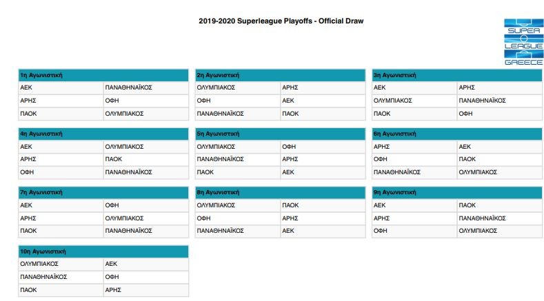 Μετά από το διοικητικό συμβούλιο που έγινε στη Super League, προχώρησε και η διαδικασία της κλήρωσης των πλέι οφ του πρωταθλήματος.