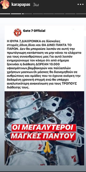 Σε μία μοναδική, σπουδαία και πάρα πολύ όμορφη κίνηση προχώρησε η Θύρα 7, όπως σας αναφέραμε και νωρίτερα, δωρίζοντας δωρεάν 10.000 μάσκες, για την προστασία από τον κορονοϊό.