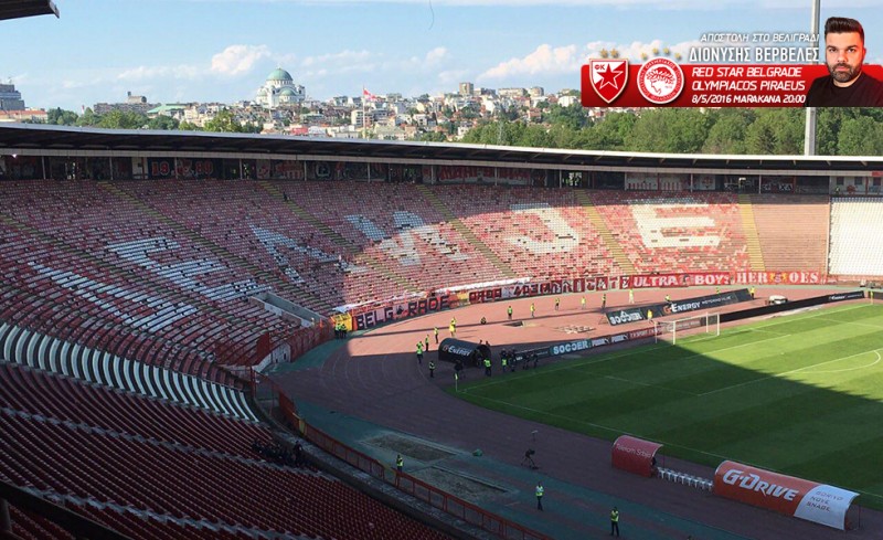 Και στο γήπεδο, ανάλογο σκηνικό. Οι οπαδοί μαζί, συνθήματα, μια ωραία ατμόσφαιρα από φίλους του Θρύλου και του Ερυθρού Αστέρα.