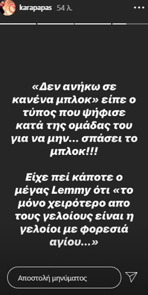 Συγκεκριμένα, ο Αντιπρόεδρος της ΠΑΕ Ολυμπιακός έγραψε: «Δεν ανήκω σε κανένα μπλοκ», είπε ο τύπος που ψήφισε κατά της ομάδας του για να μην… σπάσει το μπλοκ!!! Είχε πει κάποτε ο μέγας Lemmy ότι «το μόνο χειρότερο από τους γελοίους είναι οι γελοίοι με φορεσιά αγίου…».