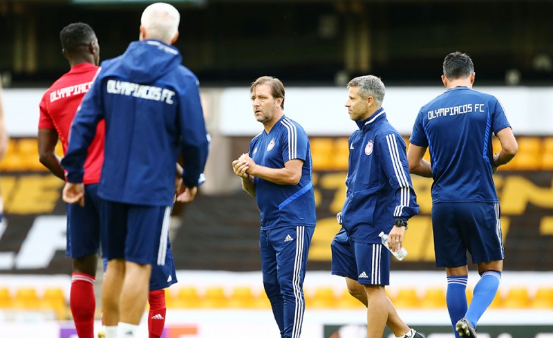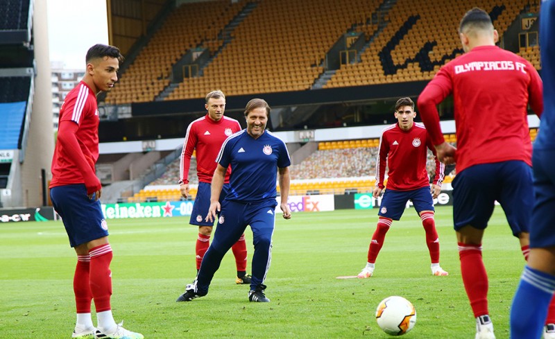 Την τελευταία του προπόνηση πριν από το παιχνίδι με τη Γουλβς (6/8) πραγματοποίησε ο Ολυμπιακός στο γήπεδο της αγγλικής ομάδας.