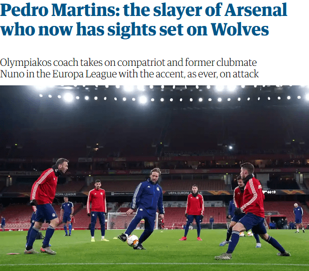Πλέκει το εγκώμιο του Πέδρο Μαρτίνς, αλλά και της δουλειάς του, στον Ολυμπιακό, με σημερινό του δημοσιεύμα, ο Guardian. Το πασίγνωστο βρετανικό Μέσο έκανε εκτενές αφιέρωμα, μιλώντας με αποθεωτικά σχόλια για τον Θρύλο και τον Πορτογάλο προπονητή. Φιλοξένησε, μάλιστα, δηλώσεις του: