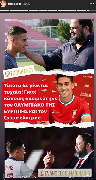 Με αφορμή την τεράστια μεταγραφή του Έλληνα μπακ στην Λίβερπουλ, ο αντιπρόεδρος του Ολυμπιακού έγραψε: «Τίποτα δεν γίνεται τυχαία! Γιατί κάποιος ονειρεύτηκε τον ΟΛΥΜΠΙΑΚΟ ΤΗΣ ΕΥΡΩΠΗΣ και τον ζούμε όλοι μας».