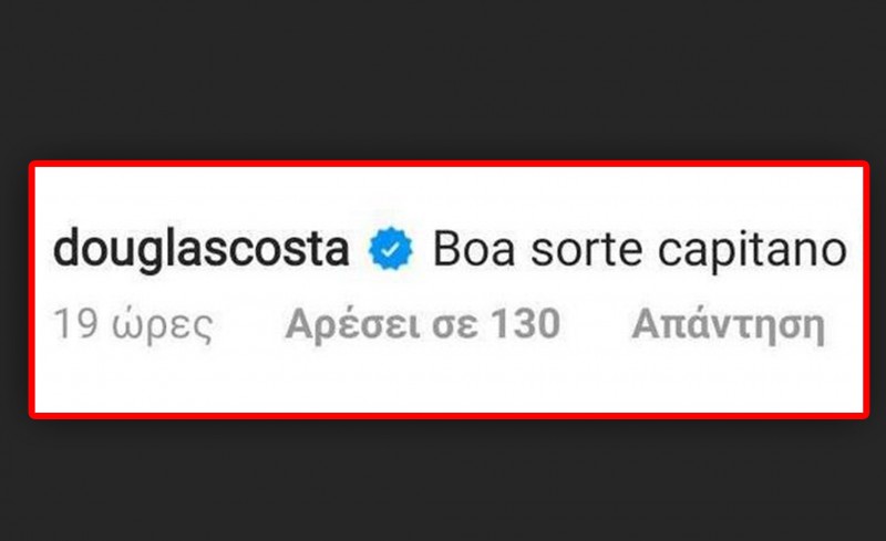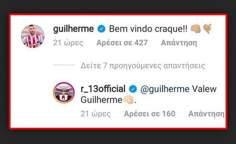 Ο Βραζιλιάνος λίγο μετά την επίσημη ανακοίνωση της μετακίνησής του στον Θρύλο, έγραψε για αυτό το γεγονός στο Instagram.