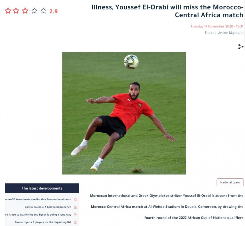 Ρεπορτάζ από το Μαρόκο αναφέρουν ότι ο μπόμπερ δεν έπαιξε ενάντια στην Κεντροαφρικανική Δημοκρατία, λόγω… ασθενείας. Και… μόνο αυτό μας έλειπε… Να χάσουμε (χτύπα ξύλο) και τον Ελ Αραμπί, πάνω στην κρίσιμη ώρα με ντέρμπι και Σίτι να πλησιάζουν…