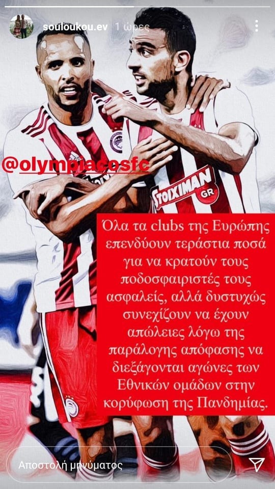 Στη διεξαγωγή των αγώνων Εθνικών ομάδων, στάθηκε και η Γενική Διευθύντρια της ΠΑΕ Ολυμπιακός, Λίνα Σουλούκου, η οποία έκανε το εξής σχόλιο στα social media: