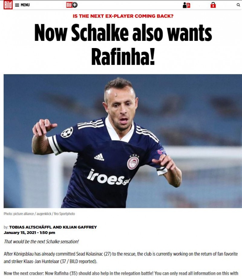Η Σάλκε δίνει τη δική της μάχη, για να παραμείνει στην πρώτη κατηγορία της Γερμανίας. Δυσκολεύεται, φέτος, περισσότερο από ποτέ και για να τα καταφέρει, αλλά και για να ενισχυθεί, έχει βάλει στο μάτι, μεταξύ άλλων, τον Ραφίνια του Ολυμπιακού! Αυτό αναφέρει η μεγάλη γερμανική εφημερίδα Bild, στην ηλεκτρονική της έκδοση.