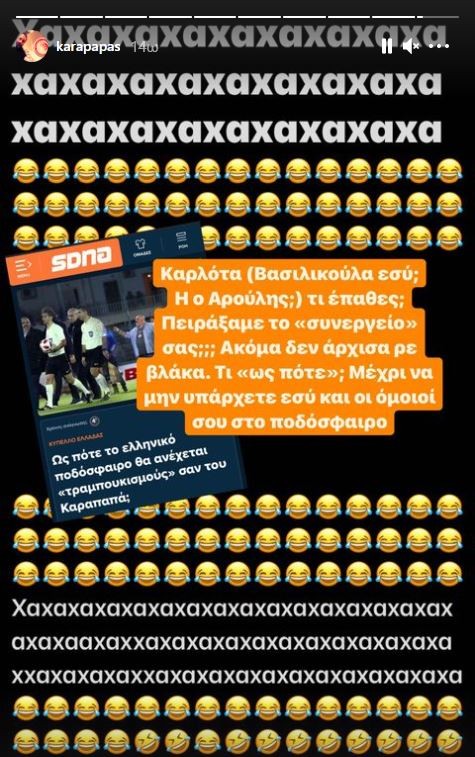 Δεν πειράζει. Επειδή ορισμένοι αναρωτήθηκαν ως πότε ο Καραπαπάς θα μάχεται, για το συμφέρον του Ολυμπιακού (επειδή εμείς έτσι το λέμε, αυτό που εκείνοι προπαγανδιστικά, βαφτίζουν… ‘ντου’) τους απάντησε ο ίδιος. Στα Social Media…