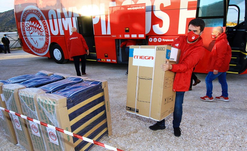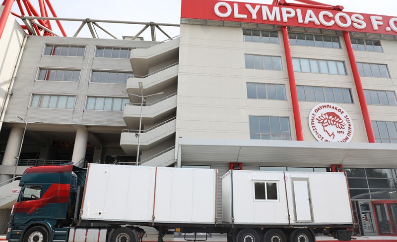 Οι πρώτοι τέσσερις οικίσκοι αναχώρησαν το πρωί από το Στάδιο «Γ. Καραϊσκάκης» με προορισμό το χτυπημένο από τους σεισμούς Δαμάσι στην Ελασσόνα, σε μια προσπάθεια του Ολυμπιακού να ανακουφίσει αρκετές οικογένειες.