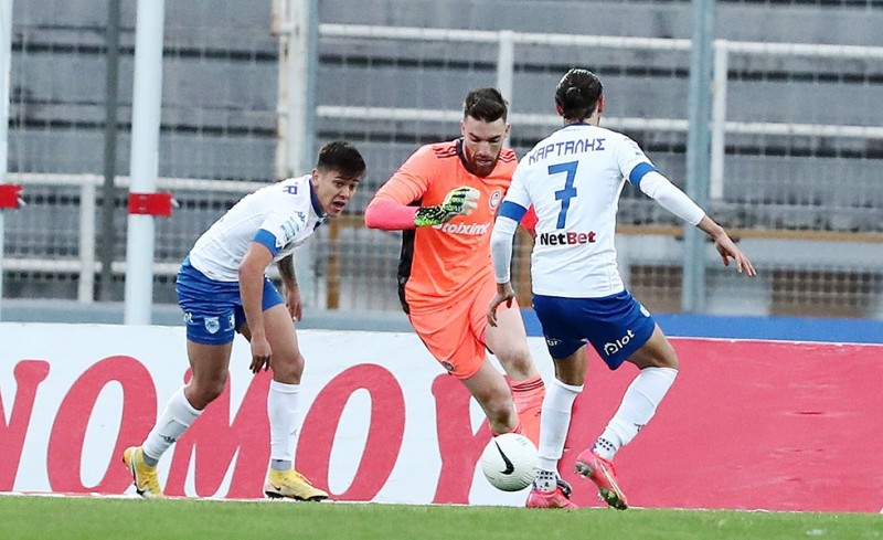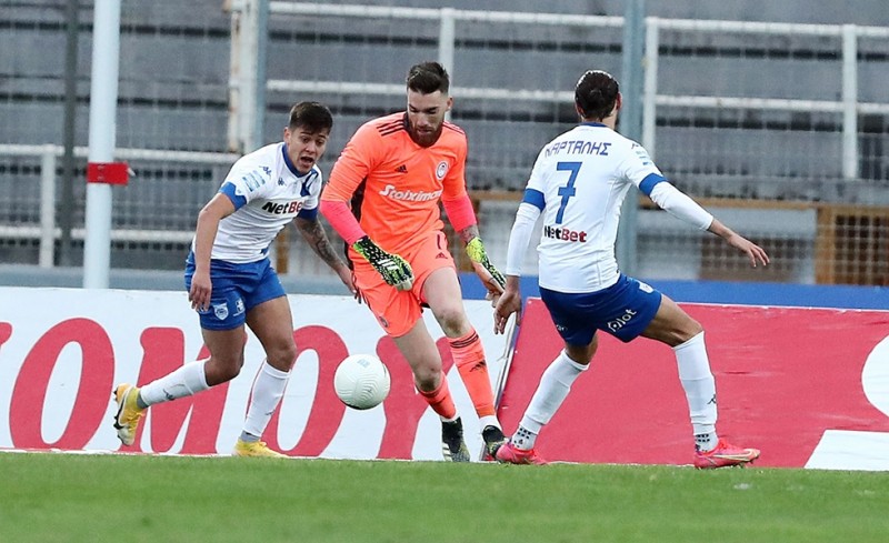 Ο Πορτογάλος τερματοφύλακας είχε την μπάλα στα πόδια μέσα στην περιοχή του Ολυμπιακού. Τον πίεσαν δύο παίκτες του ΠΑΣ προκειμένου να τον κάνουν να υποπέσει σε λάθος.