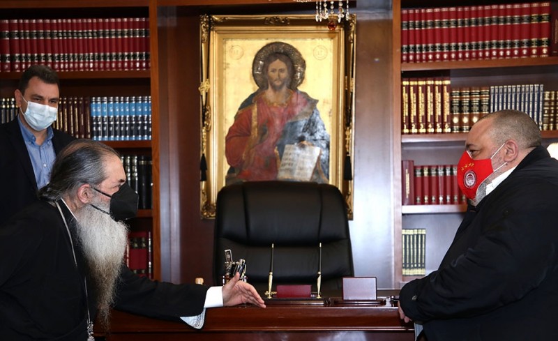 Ο Κώστας Καραπαπάς, Αντιπρόεδρος του Ολυμπιακού, συναντήθηκε το πρωί της Μ. Τετάρτης, με τον Σεβασμιότατο Μητροπολίτη Πειραιώς, κ.κ. Σεραφείμ και του παρέδωσε μία επιταγή, από την ΠΑΕ Ολυμπιακός, προσφορά του ηγέτη του Θρύλου, κ. Μαρινάκη. Για να στηρίξει, φυσικά, το έργο της Εκκλησίας! Αδιάκοπα δίπλα στον συνάνθρωπο, ο Ολυμπιακός…