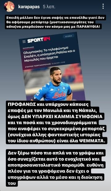 ΠΡΟΦΑΝΩΣ και υπάρχουν κάποιες επαφές με τον Μανωλά και τη Νάπολι, όμως ΔΕΝ ΥΠΑΡΧΕΙ ΚΑΜΙΑ ΣΥΜΦΩΝΙΑ και τα ποσά και τα χρονοδιαγράμματα που αναφέρει το συγκεκριμένο ρεπορτάζ (συνέχεια άλλης φανταστικής ιστορίας του ίδιου ανθρώπου) είναι όλα ΨΕΜΑΤΑ.