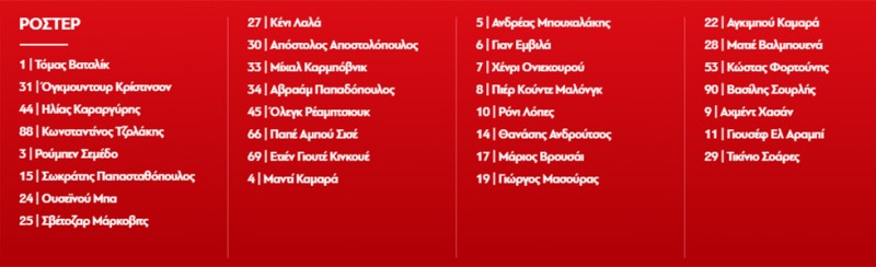 Δείτε όλους τους αριθμούς των παικτών του Ολυμπιακού: