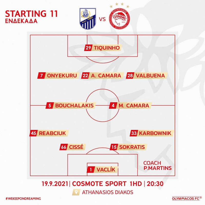 Βλέπουμε λοιπόν πως το σχήμα, το οποίο ο Πέδρο Μαρτίνς επιλέγει, δεν έχει πολλές αλλαγές, σε σχέση με την 11άδα της Πέμπτης. Αναγκαίες, μόνο και ελάχιστες.