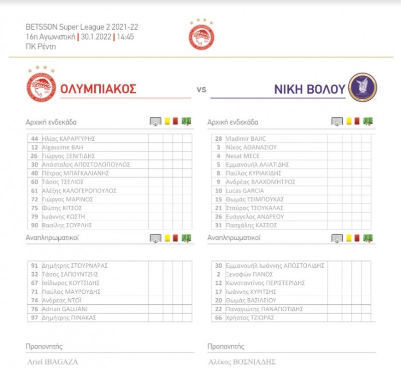 Ο Ολυμπιακός Β’ είναι αποκλειστικά στραμμένος στην επικείμενη μάχη με τη Νίκη Βόλου, για τη Σούπερ Λιγκ 2 και τη 16η αγωνιστική! Ο Θρύλος έχει μπροστά του μία δύσκολη αναμέτρηση, μέσω της οποίας θέλει να επιστρέψει στις νίκες και στις καλές εμφανίσεις. Μετά την ήττα στην Αριδαία, το μόνο αποτέλεσμα, το οποίο ο Ιμπαγάσα και οι ποδοσφαιριστές του βλέπουν εδώ, είναι ο άσος. Ο Ολυμπιακός υποδέχεται τη Νίκη Βόλου και ο Αργεντινός προπονητής επέλεξε την ακόλουθη ενδεκάδα, για να την αντιμετωπίσει: