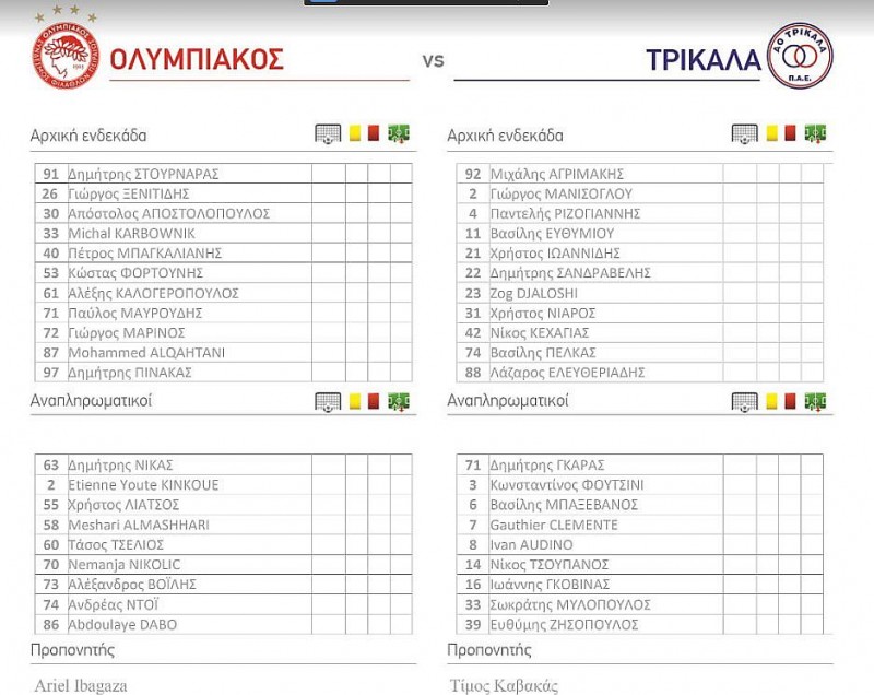 Αναλυτικά οι δύο 11άδες, αλλά και οι πάγκοι, στην παρακάτω φωτό:
