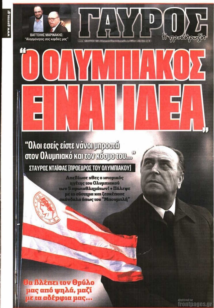 Σήμερα, 8 χρόνια μετά, τιμούμε ακόμη τη μνήμη του Σταύρου Νταϊφά. Ενός ανθρώπου, ο οποίος έκανε το όνομά του συνώνυμο με τον Ολυμπιακό και με την αγάπη για το κόκκινο και το λευκό και έδινε τα πάντα για τον σύλλογο που αγαπούσε. Τον ΟΛΥΜΠΙΑΚΟ μας. Ο Νταϊφάς ήταν ένας άνθρωπος ο οποίος συνέβαλε τα μέγιστα, ώστε η «ιδέα» που λέγεται ΟΛΥΜΠΙΑΚΟΣ, ολοένα να γιγαντώνεται, με το πέρασμα του χρόνου…