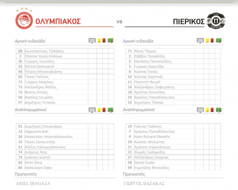 Στο κέντρο ξεκινούν οι Σουρλής και Ξενιτίδης, ενώ τριάδα στη μεσοεπιθετική γραμμή είναι οι Βοΐλης, Τσέλιος και Μαρίνος.