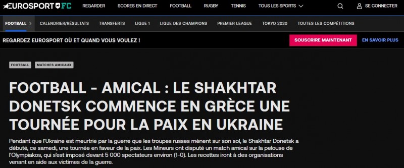 Σπουδαία Μέσα του εξωτερικού, όπως το BBC, το Le Figaro, η Daily Mail, το Eurosport, το Sky Sport στην Ιταλία, αλλά και άλλα, χειροκρότησαν την προσπάθεια του Ολυμπιακού, να διαδώσει το μήνυμα κατά του πολέμου και να στηρίξει έμπρακτα τους πρόσφυγες από την Ουκρανία.