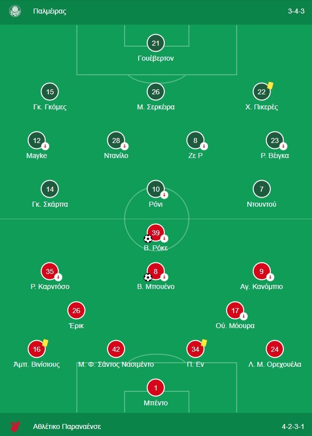 Ήταν πολύ απειλητικός, δημιουργούσε, εκτελούσε, έπαιρνε επάνω του στατικές φάσεις… Γενικά ήταν πολύ επιδραστικός στο παιχνίδι της Παλμέιρας, η οποία χάρη στα γκολ των Βίτορ Ρόκε και Βίτορ Μπουένο, γνώρισε την ήττα.