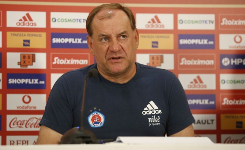 Για το ότι η Σλόβαν υπερτερεί λόγω επίσημων αγώνων: «Δεν το πιστεύω αυτό. Ο Ολυμπιακός είναι δυνατός στο γήπεδό του, έχει παίξει δυνατά φιλικά και πέρυσι είχαμε δεχθεί αρκετά γκολ. Είχαμε δεχθεί τρία γκολ από στατικές φάσεις. Θα προσπαθήσουμε να αιφνιδιάσουμε τον Ολυμπιακό. Άκουσα πως ίσως ο Ουμτιτί έρθει στον Ολυμπιακό. Άκουσα τη φημολογία αυτή. Το μόνο που είναι σίγουρο είναι πως ο Ολυμπιακός θα παίξει με όσους έχει αυτή τη στιγμή».