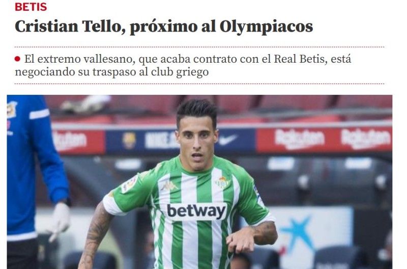 Οι πρωταθλητές Ελλάδας βρίσκονται σε αναζήτηση εξτρέμ, με το εν λόγω δημοσίευμα για τον Ισπανό εξτρέμ να υποστηρίζει πως οι επαφές με τον μάνατζερ του ποδοσφαιριστή είναι σε καλό δρόμο και δεν αποκλείεται μέσα στις επόμενες μέρες να υπάρξει οριστική συμφωνία.