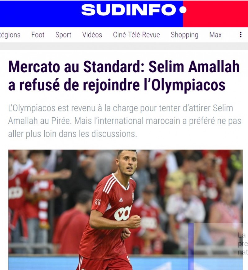 Τα μεταγραφικά σενάρια πάνε κι έρχονται, ειδικά στο εξωτερικό, με ένα από αυτά να βγαίνει το πρωί της Τετάρτης (17/8) από το Βέλγιο και να αφορά το «10άρι» της Σταντάρ Λιέγης, τον διεθνή Μαροκινό Σελίμ Αμαλά, για τον οποίο οι Βέλγοι ισχυρίζονται ότι ο Ολυμπιακός κατέθεσε επίσημη πρόταση τις προηγούμενες ημέρες.