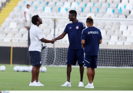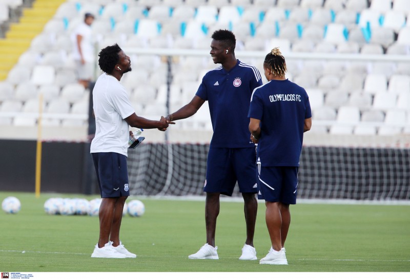Οι «ερυθρόλευκοι» λίγη ώρα μετά την άφιξή τους στο «ΓΣΠ», βγήκαν στον αγωνιστικό χώρο και έκαναν την καθιερωμένη βόλτα στον αγωνιστικό χώρο του γηπέδου.