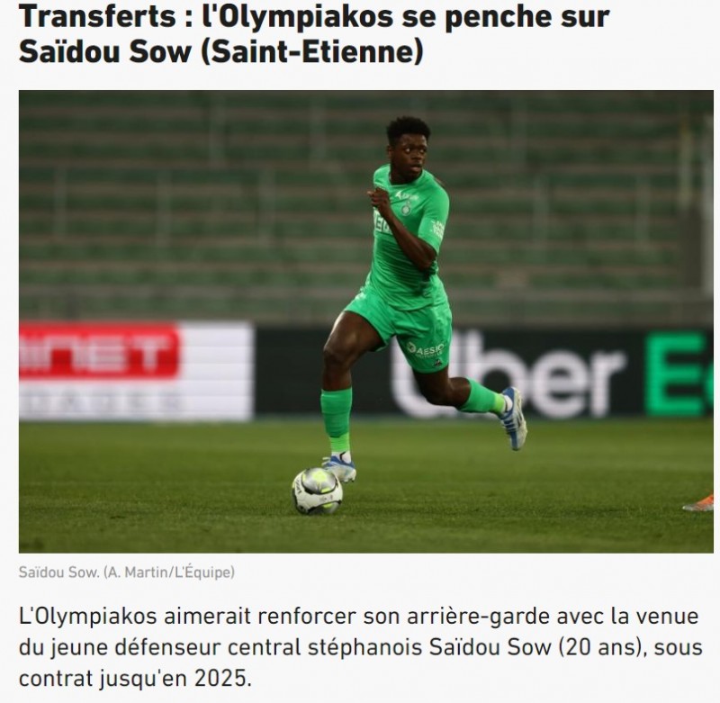 Μάλιστα, η έγκριτη γαλλική εφημερίδα «Equipe» τονίζει, ότι αναμένονται εξελίξεις για τον νεαρό κεντρικό αμυντικό της Σεντ Ετιέν, καθώς και για τον Θρύλο.