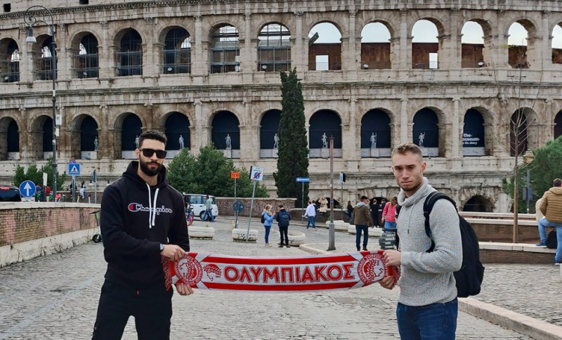Αυτήν τη φορά, η φωτογραφία έρχεται από την όμορφη Ρώμη και τους Χρήστο και Βασιλή, οι οποίοι με το κασκόλ με τον δαφνοστεφανωμένο έφηβο, φωτογραφήθηκαν μπροστά από το Κολοσσαίο.