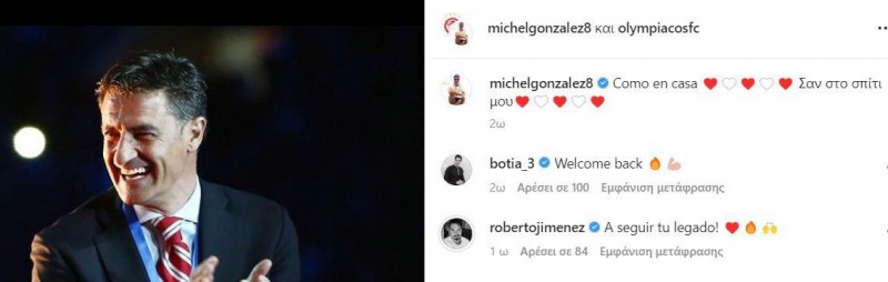 Μάλιστα, δύο πρώην ποδοσφαιριστές των Πειραιωτών, συμπατριώτες του Μίτσελ, έσπευσαν να καλωσορίσουν τον Ισπανό τεχνικό στους «ερυθρόλευκους», οι οποίοι σχολίασαν κάτω από την ανάρτηση του Ισπανού, για την επιστροφή του στο λιμάνι.